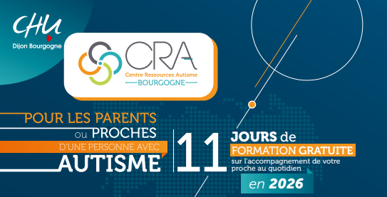 Le CRA Bourgogne a construit, en partenariat avec les acteurs de la région (associations d’usagers et de familles, organismes gestionnaires, établissements des secteurs médico-social et sanitaire, réseaux de santé, MDPH, Éducation nationale, …), un programme de formation sur l’accompagnement des personnes avec TSA (Troubles du Spectre de l’Autisme) en direction des proches aidants familiaux (parents, fratrie, grands-parents, collatéraux ou proches accompagnant…